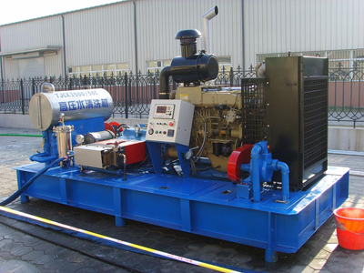 3D250(A)55/150型高壓水清洗機? 泵型:3D250(A)-S壓力:150 MPa 流量:55L/min 驅動形式:濰柴斯太爾柴油機,柴油機帶有空濾器、消音器、水箱、氣泵。? 泵頭材質: 高強度合金鋼,表面滲渡處理;柱塞材質:高強度不銹鋼,表面噴焊 、陶瓷; 氣動旁路截止閥:用于柴油機的無負荷起動及高壓泵遠程控制