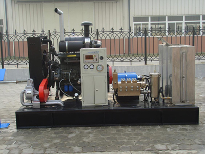 頭,氣缸進(jìn)氣壓力0.4 MPa ? 進(jìn)水兩級(jí)過(guò)濾粗濾:Y型過(guò)濾器 200μ 精濾:不銹鋼過(guò)濾器 50μ 前置泵:增壓加過(guò)橋球閥控制? 底盤式油箱:容積600升,可以方便用戶現(xiàn)場(chǎng)使用不銹鋼過(guò)渡水箱:容積220升,裝有液位計(jì)。? 電控系統(tǒng):采用PLC設(shè)計(jì),可對(duì)柴油機(jī)的轉(zhuǎn)速、機(jī)油壓力、水溫、電壓、累計(jì)工作時(shí)間進(jìn)行自動(dòng)顯示和報(bào)警。 電控系統(tǒng)還對(duì)進(jìn)水壓力,出水壓力以及泵的潤(rùn)滑油溫度進(jìn)行自動(dòng)顯示和報(bào)警:當(dāng)進(jìn)水壓力低于0.1 MPa時(shí),系統(tǒng)自動(dòng)卸荷。當(dāng)出水壓力高于140 MPa時(shí),系統(tǒng)自動(dòng)停機(jī)。當(dāng)潤(rùn)滑油溫度超過(guò)70℃時(shí),系統(tǒng)進(jìn)行聲光報(bào)警。